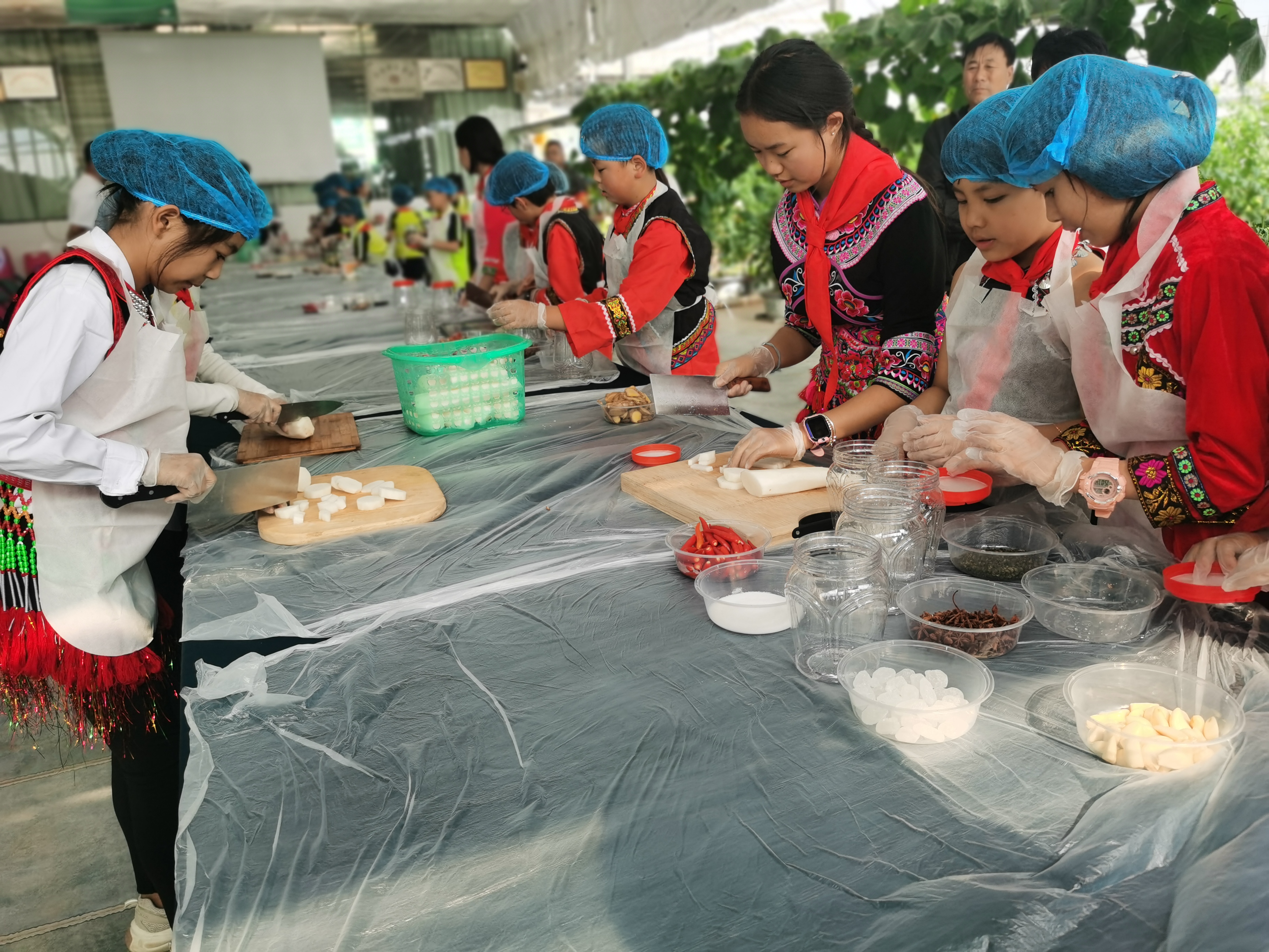 在玉溪阳瑞农业科技发展有限公司基地里,一堂别开生面的劳动教育课程正在这里进行。来自瓦窑中心小学的同学们在老师的指导下进行黄瓜、萝卜的泡制,采摘、清洗、切块、调料、装瓶……每一个环节同学们都做得一丝不苟。不一会儿,一瓶瓶新鲜的泡菜就装瓶完成,孩子们脸上洋溢着劳动的快乐与自信。