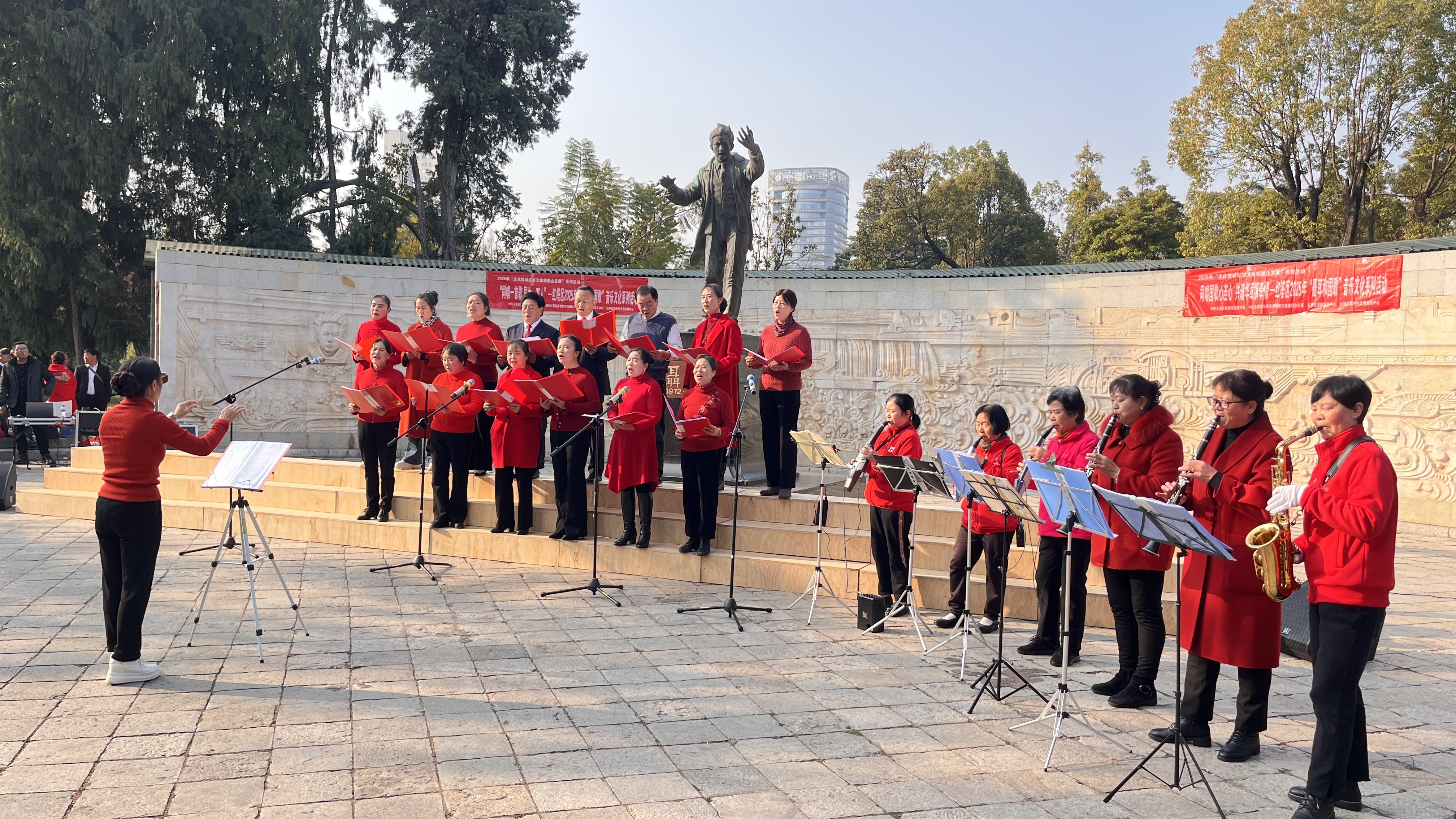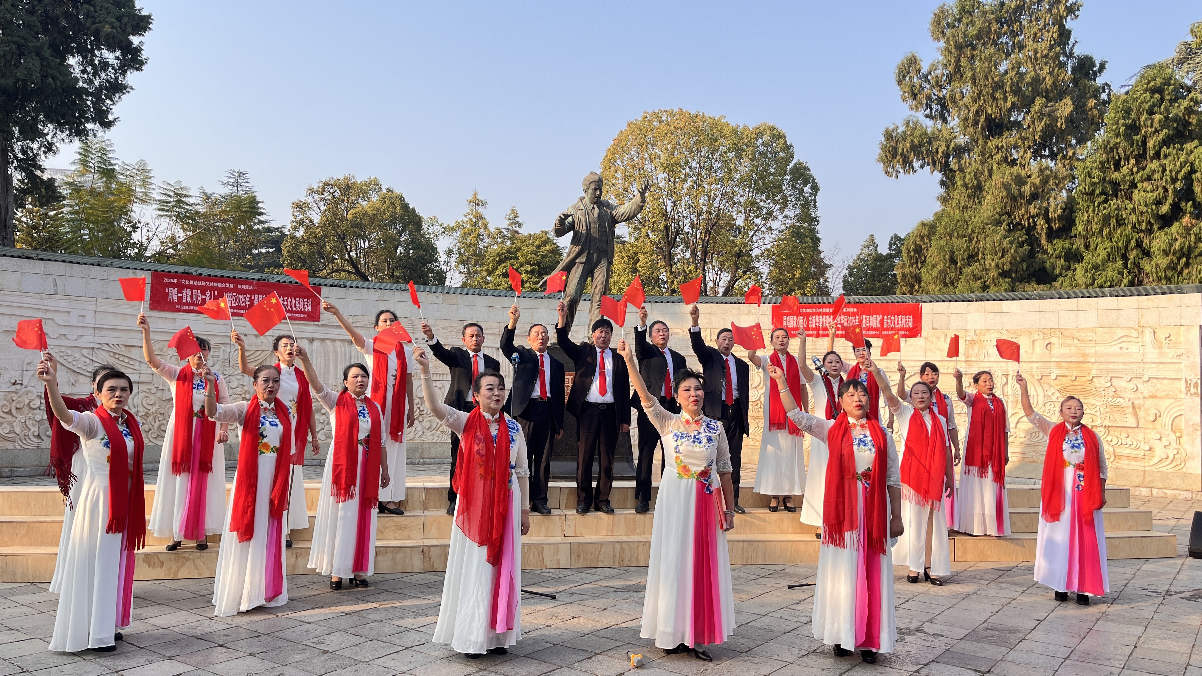 据了解,此次活动由红塔区委宣传部、红塔区委文明办主办,活动以 “同唱一首歌 同为一家人” 为主题,凤凰街道文秀社区聂耳百姓合唱团、玉兴街道聂耳百姓合唱团、聂耳合唱团玉龙小分队三支队伍参与展演。活动旨在持续讲好 “聂耳和国歌的故事”,通过歌声传承民族精神,凝聚人心,用歌声传递对祖国的热爱,对民族精神的传承。