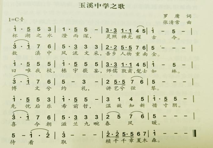 郑永福在任玉溪一中校长期间,还邀请自己的老师原西南联大教授罗庸和张清常为玉溪一中写了一首校歌——《玉溪中学校歌》。罗庸和张清常两位教授共同合作作词、谱曲的歌曲有两首,第一首是《西南联大校歌》,第二首是《玉溪一中校歌》,因此两首校歌被称为姊妹篇(可参见《西南联大和玉溪的故事》①玉溪一中校歌:西南联大校歌的姊妹篇)。这可谓是玉溪一中校史和玉溪文化史上的光辉一页!