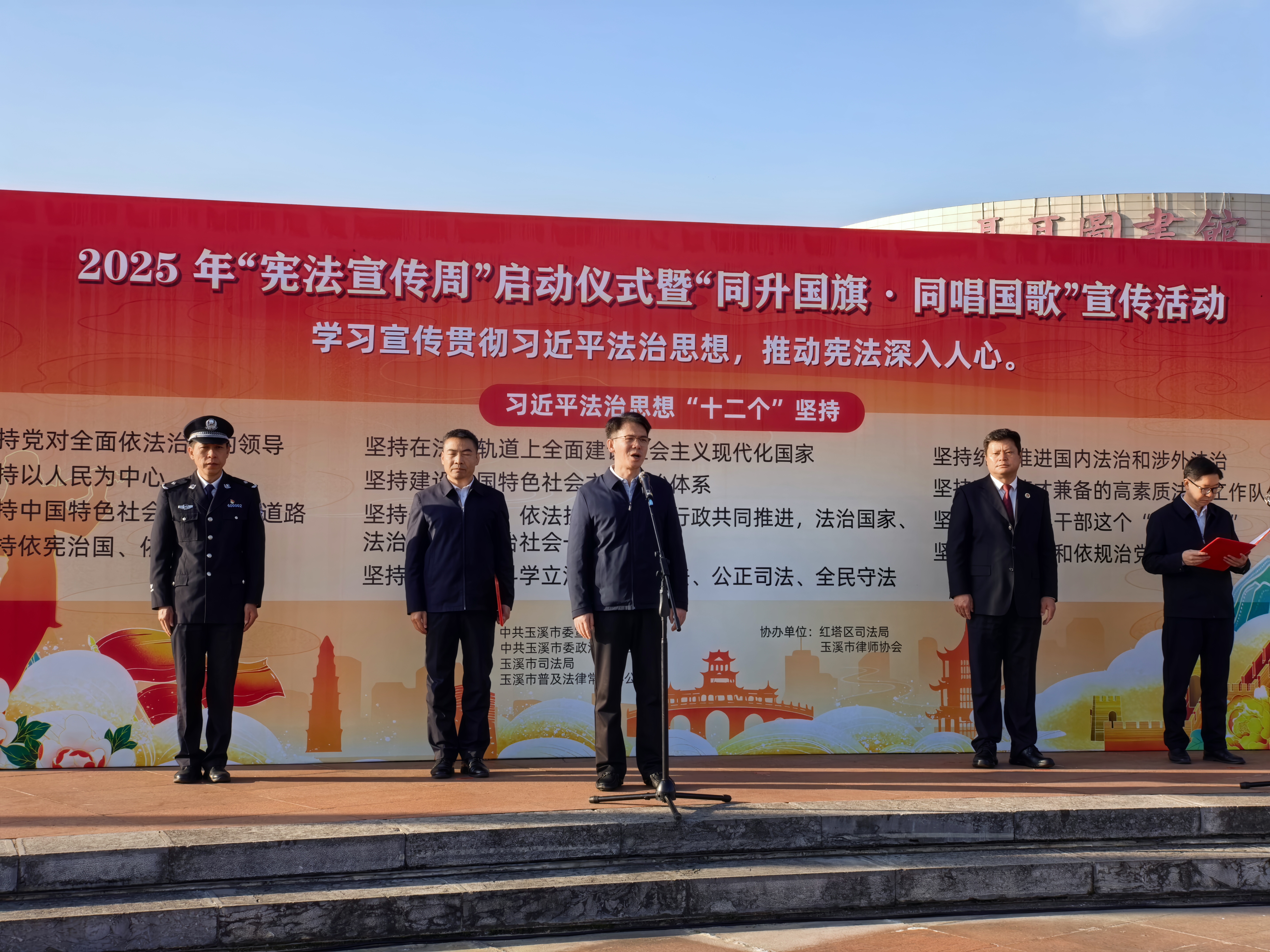 12月4日是第十二个国家宪法日,当天上午,玉溪市2025年“宪法宣传周”启动仪式暨“同升国旗·同唱国歌”宣传活动在聂耳音乐广场举行,活动以“学习宣传贯彻习近平法治思想,推动宪法深入人心”为主题,旨在弘扬宪法精神和社会主义法治精神,坚定维护宪法权威,全面推动宪法实施。