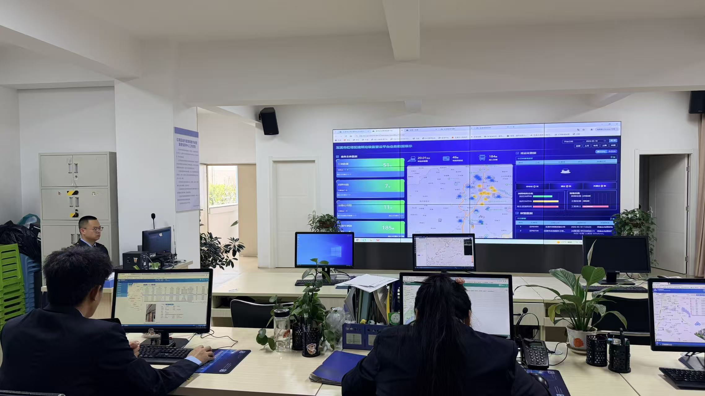 在红塔区行政执法指挥调度中心,每天工作人员都会通过系统实时梳理城市管理高频案件并有序派单,让违法占道经营、井盖破损、共享单车乱停放等问题在前端大屏上清晰呈现,真正实现了“一屏观全城、一网管全域”的线上线下同步管理。