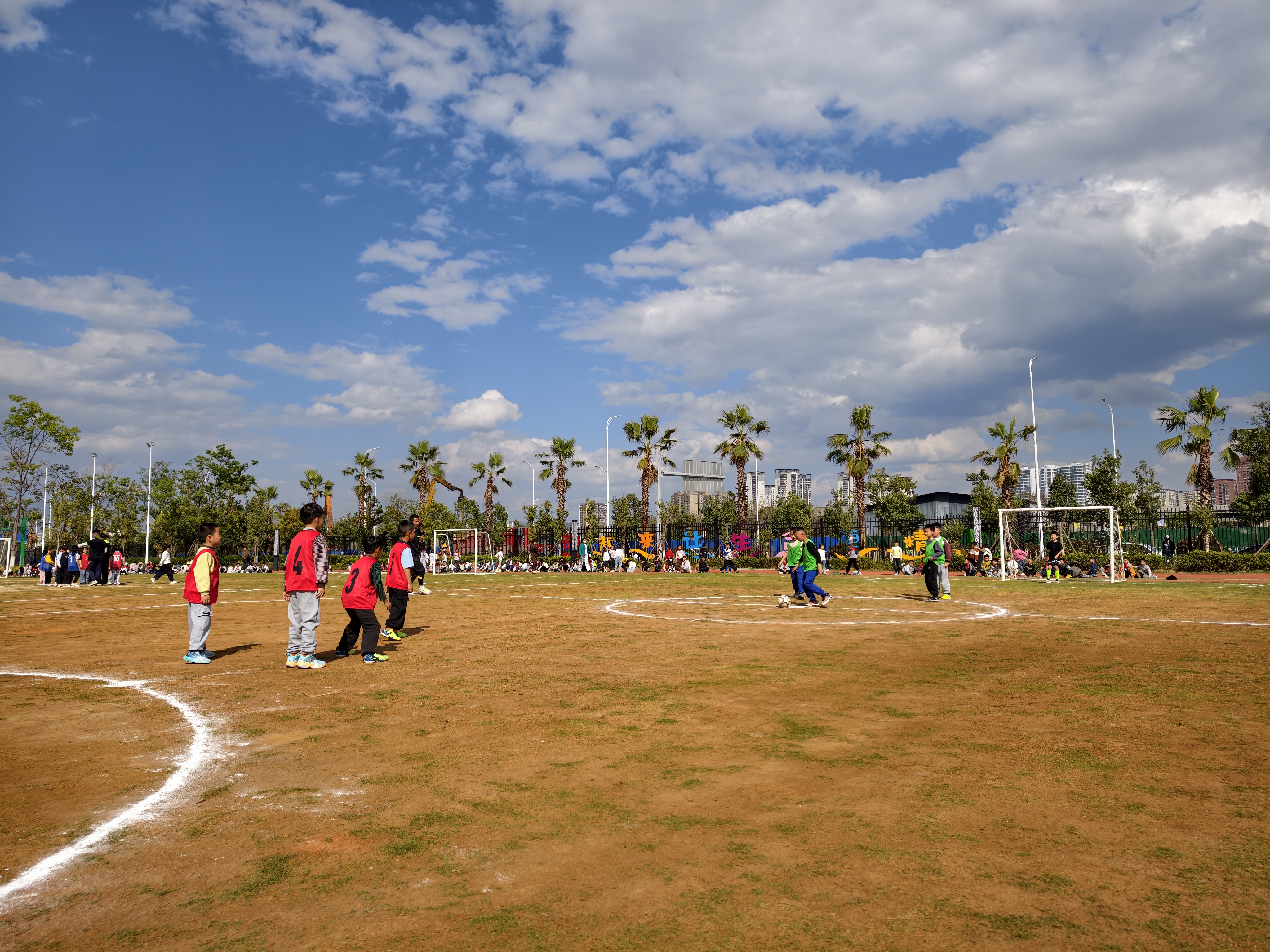 场上,小运动员们精神抖擞、斗志昂扬,传球射门动作娴熟;抢断、投篮配合默契;场下,啦啦队的欢呼声、呐喊声此起彼伏。大家一起沉浸在运动带给他们的欢乐中。