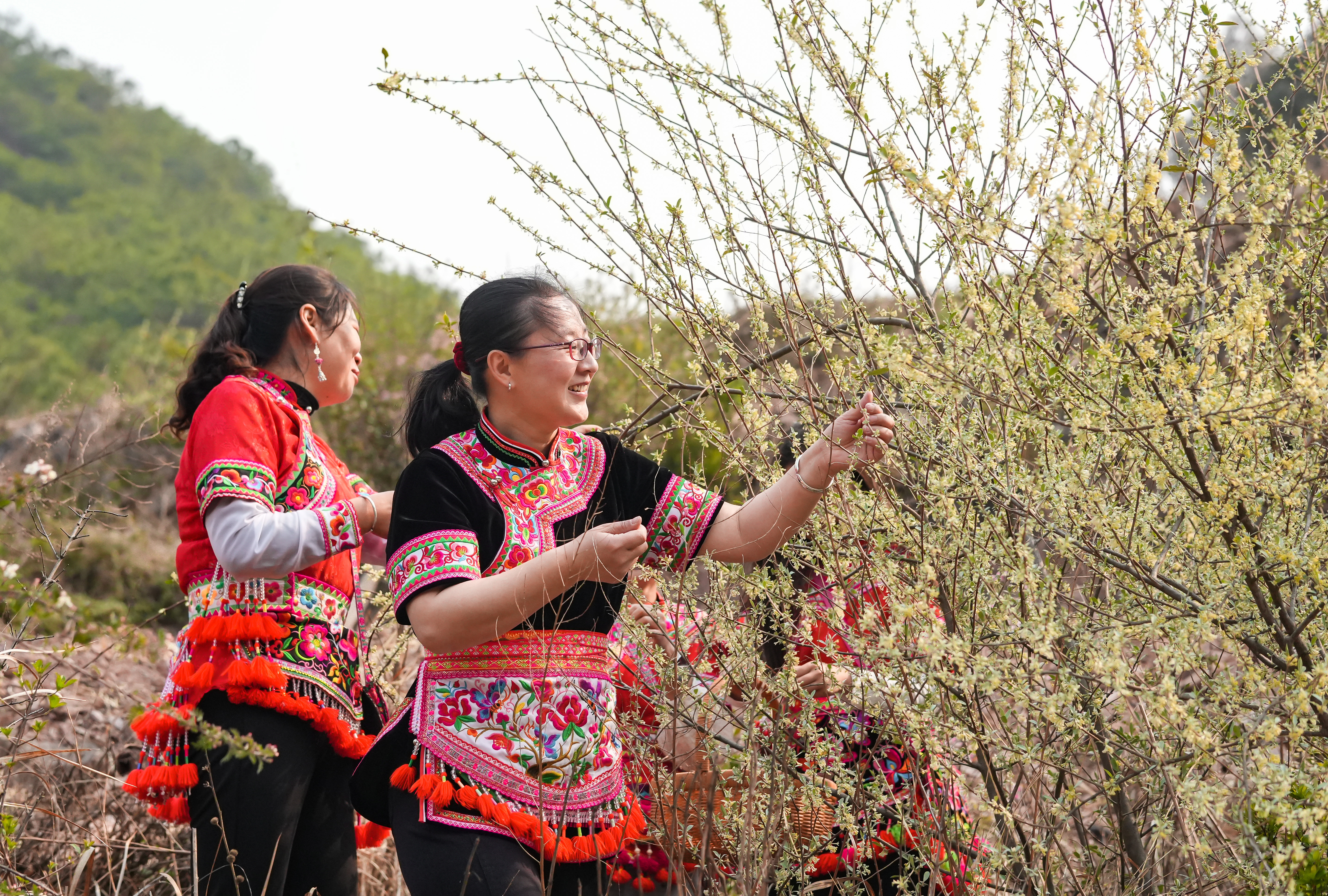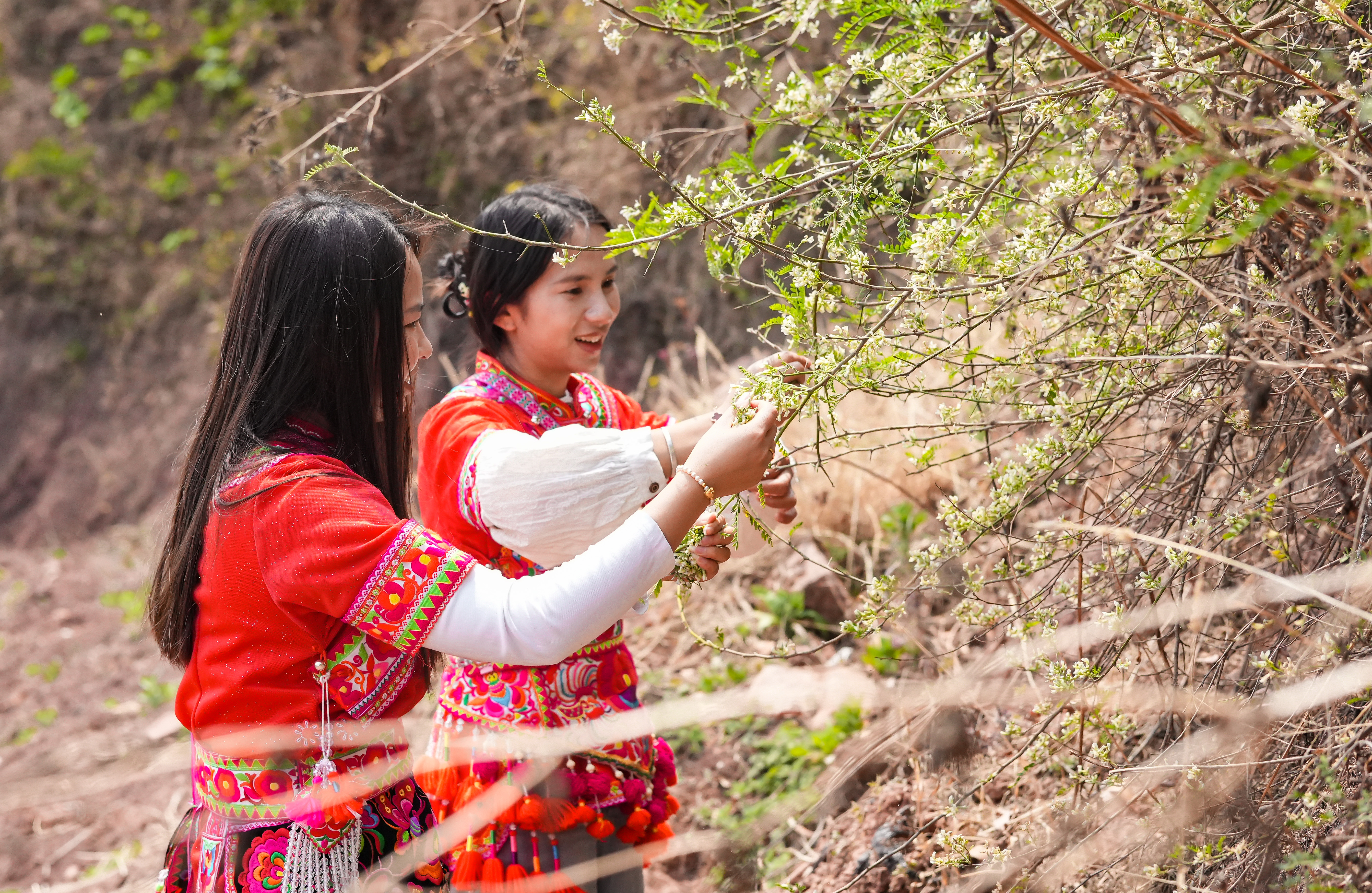 阳春三月,苦刺花、棠梨花、金雀花、玉荷花竞相绽放,玉溪市红塔区小石桥乡的彝家姐妹三五成群,相约上山采摘野花,将山间的春意端上餐桌,尽享大自然的慷慨馈赠。