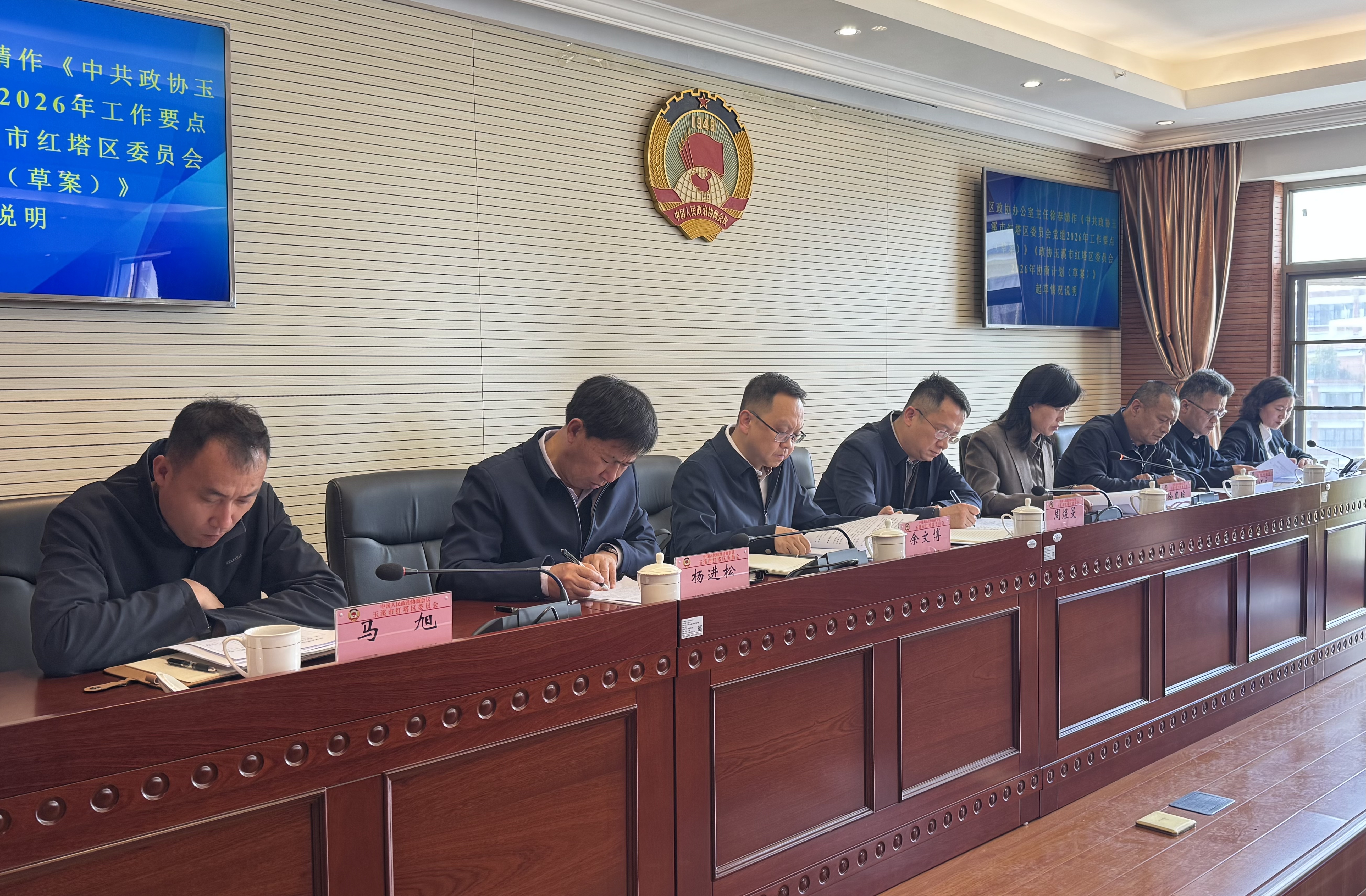 会议传达学习全国、全省、全市政协会议精神;听取区政协党组2026年工作要点和政协2026年协商计划的起草情况说明;听取区委组织部关于有关人事事项的说明;开展“书香政协”委员读书活动。会议原则通过《政协玉溪市红塔区委员会2026年协商计划》。会议还通过了有关人事事项。