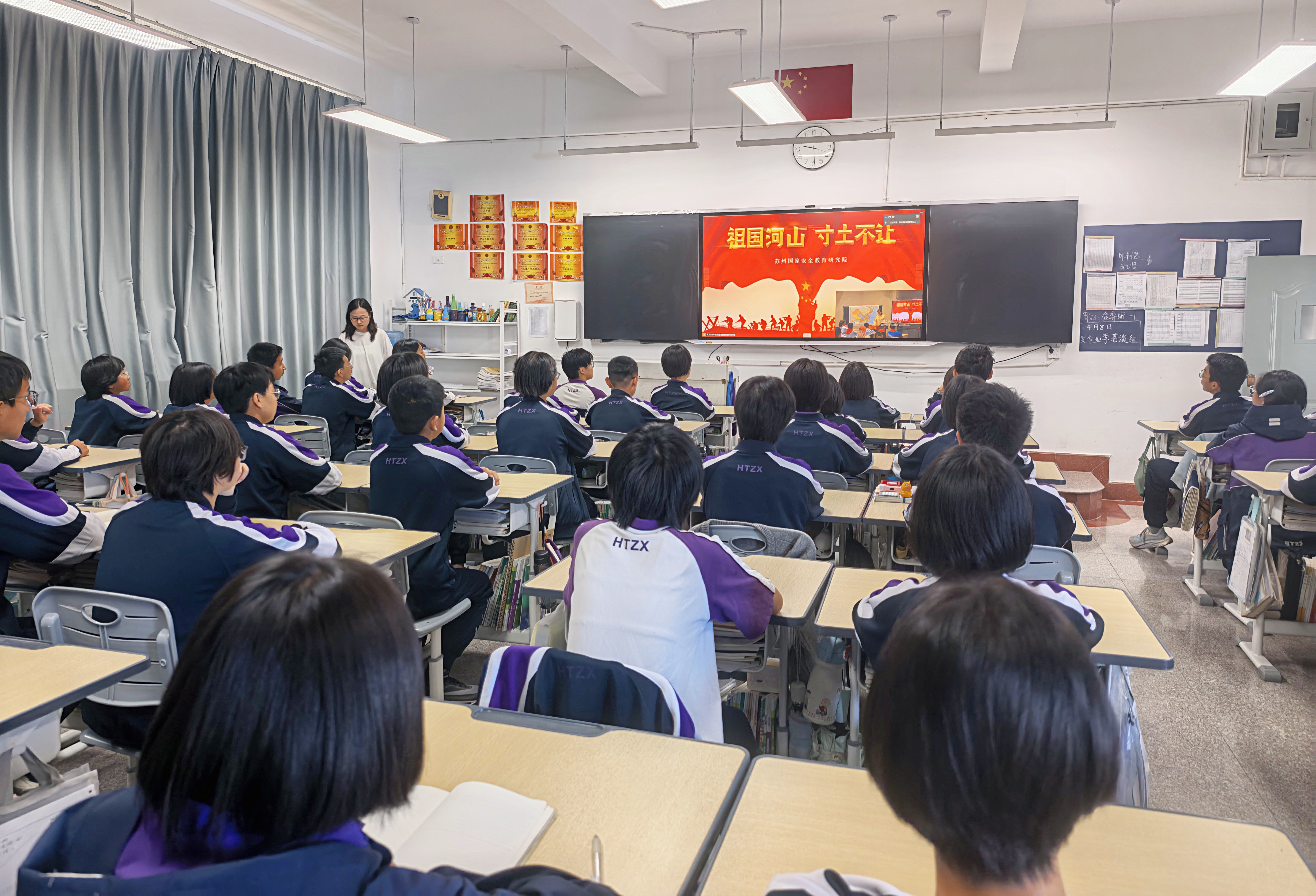 上午九点,红塔中学初二年级的思政课上,老师借助多媒体教学设备,为学生远程讲授国土安全教育专题课程《祖国河山,寸土不让》。课程图文并茂、案例鲜活,生动解读国家版图知识、领土构成及边界划定原则,深刻阐释维护海洋权益、守护领土完整的重要意义,让抽象的国土安全知识可感可知。