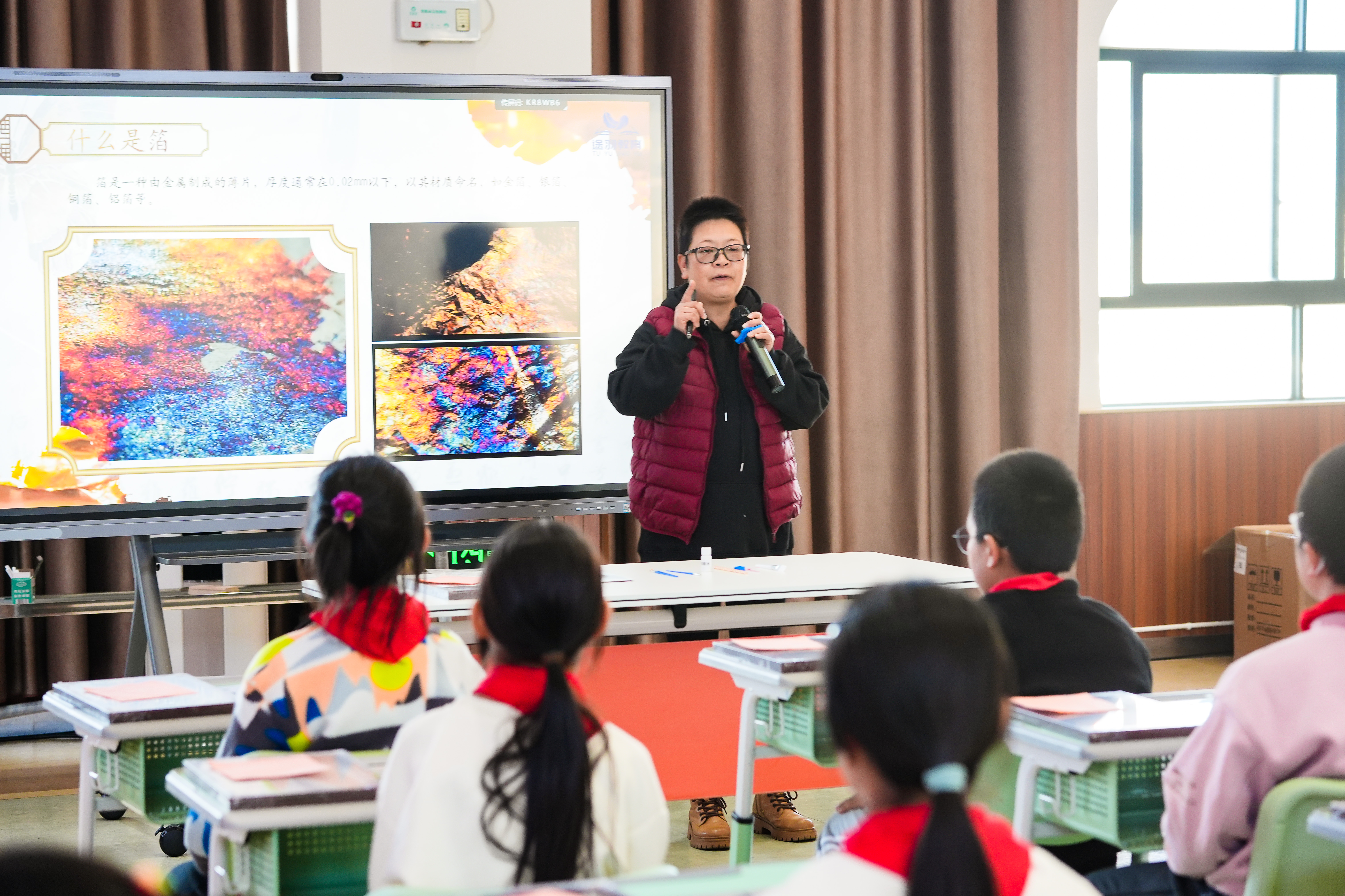 12月30日下午,玉溪一小文化校区的美术教室内,退休教师郑玮青正满怀热情地为同学们讲解非遗烧箔画的历史渊源、制作工艺及艺术价值。四年级(4)班的45名同学认真聆听,不时举手提问,课堂气氛十分热烈。郑玮青说:“非遗技艺进校园活动可谓一举两得,既提升了青少年的审美素养和动手能力,让非遗文化得以推广,又让退休干部能发挥专业特长,丰富了晚年生活。”